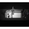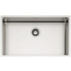 Lavello in acciaio AISI 304 18/10 Monovasca finitura satinplus, piletta manuale inox satinata con diametro 114 mm, fondo e pareti dai bordi arrotondati con raggio 12 mm, installazione sopra  top, filo top in una base cucina 80.