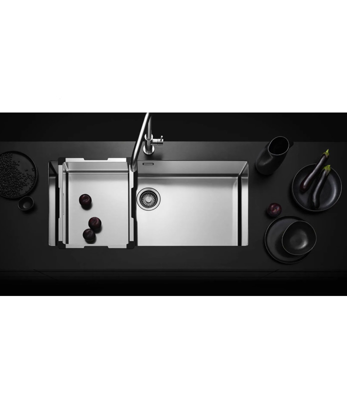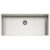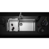 Lavello in acciaio AISI 304 18/10 Monovasca finitura satinplus, piletta manuale inox satinata con diametro 114 mm, fondo e pareti dai bordi arrotondati con raggio 12 mm, installazione sopra top, filo top in una base cucina 100.