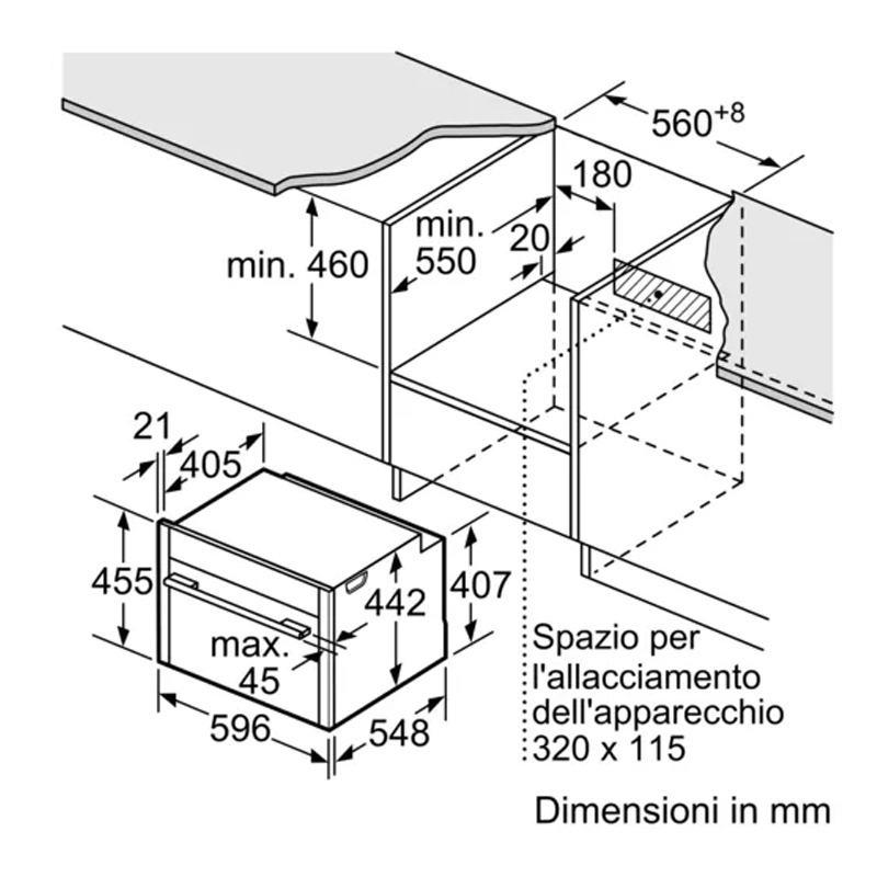 · Superficie cavità: acciaio inox, interno porta piatto, Illuminazione interna, tasto info, Programma di decalcificazione, capacità serbatoio: 1.3 l.