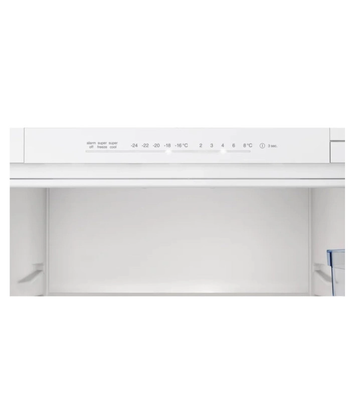Un frigorifero combinato da incasso, dotato di ripiani flessibili e facilmente accessibili per gestire al meglio gli spazi disponibili e poter disporre gli alimenti come più si preferisce.
