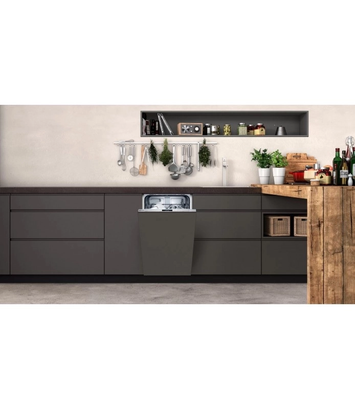 Lavastoviglie a incasso a scomparsa totale, efficiente e silenziosa, che permette di gestire, in uno spazio di soli 45 cm, fino a 9 coperti.